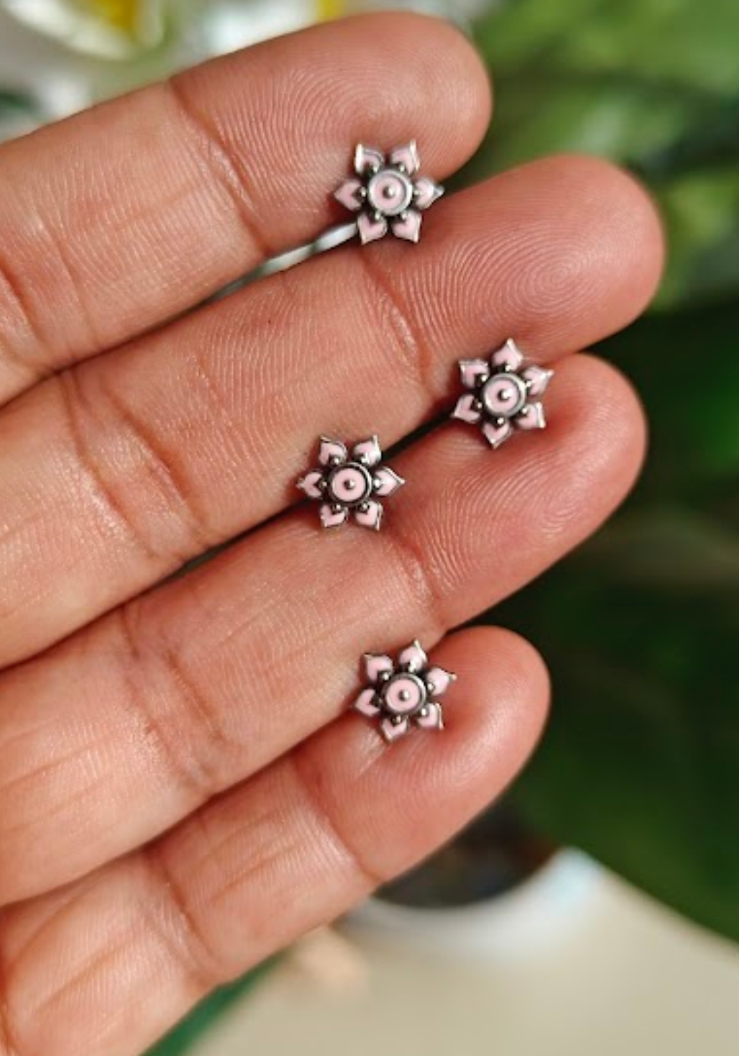 Enamel painted silver screwback nosepin. 8mm