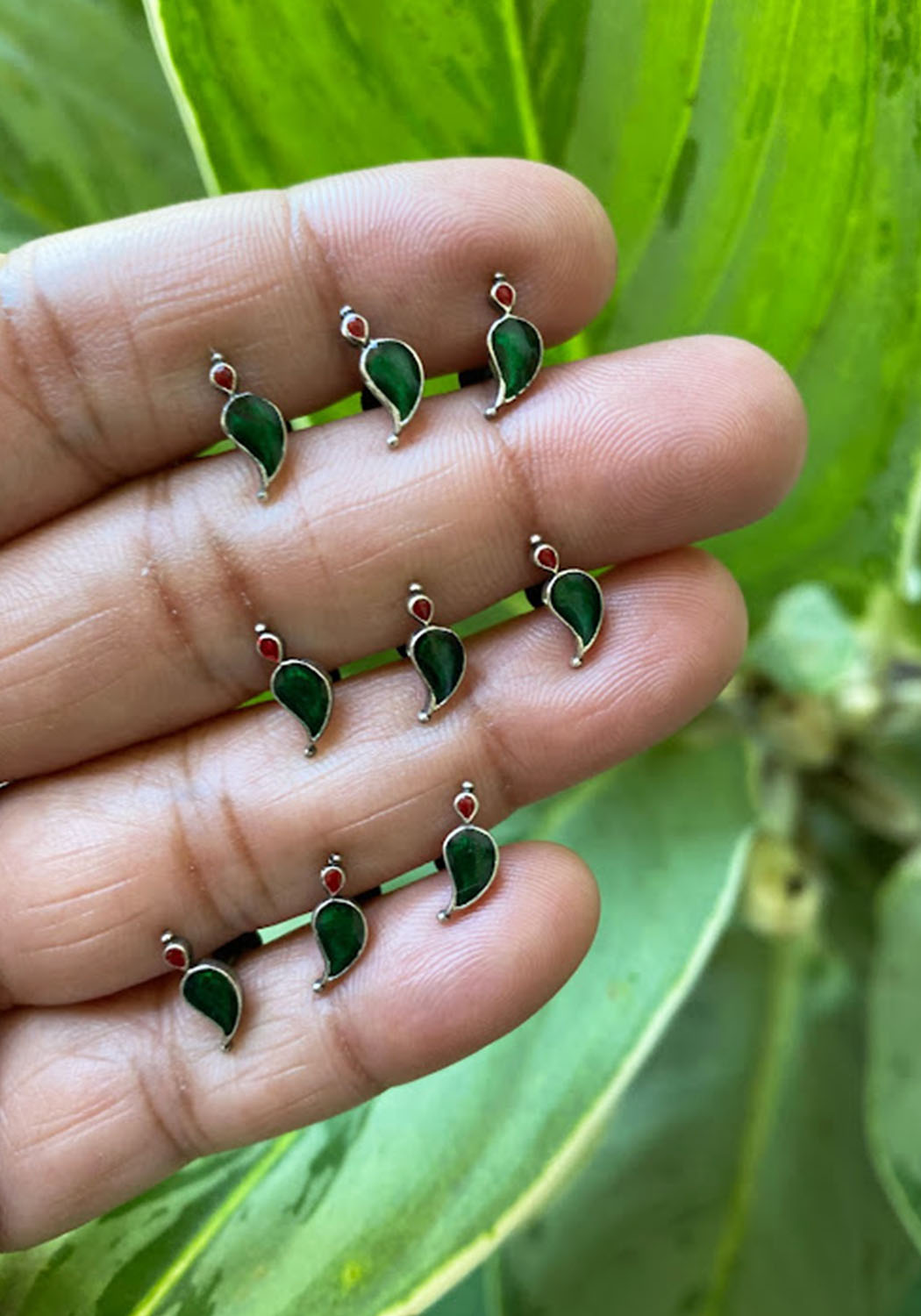 Enamel painted silver screwback nosepin.