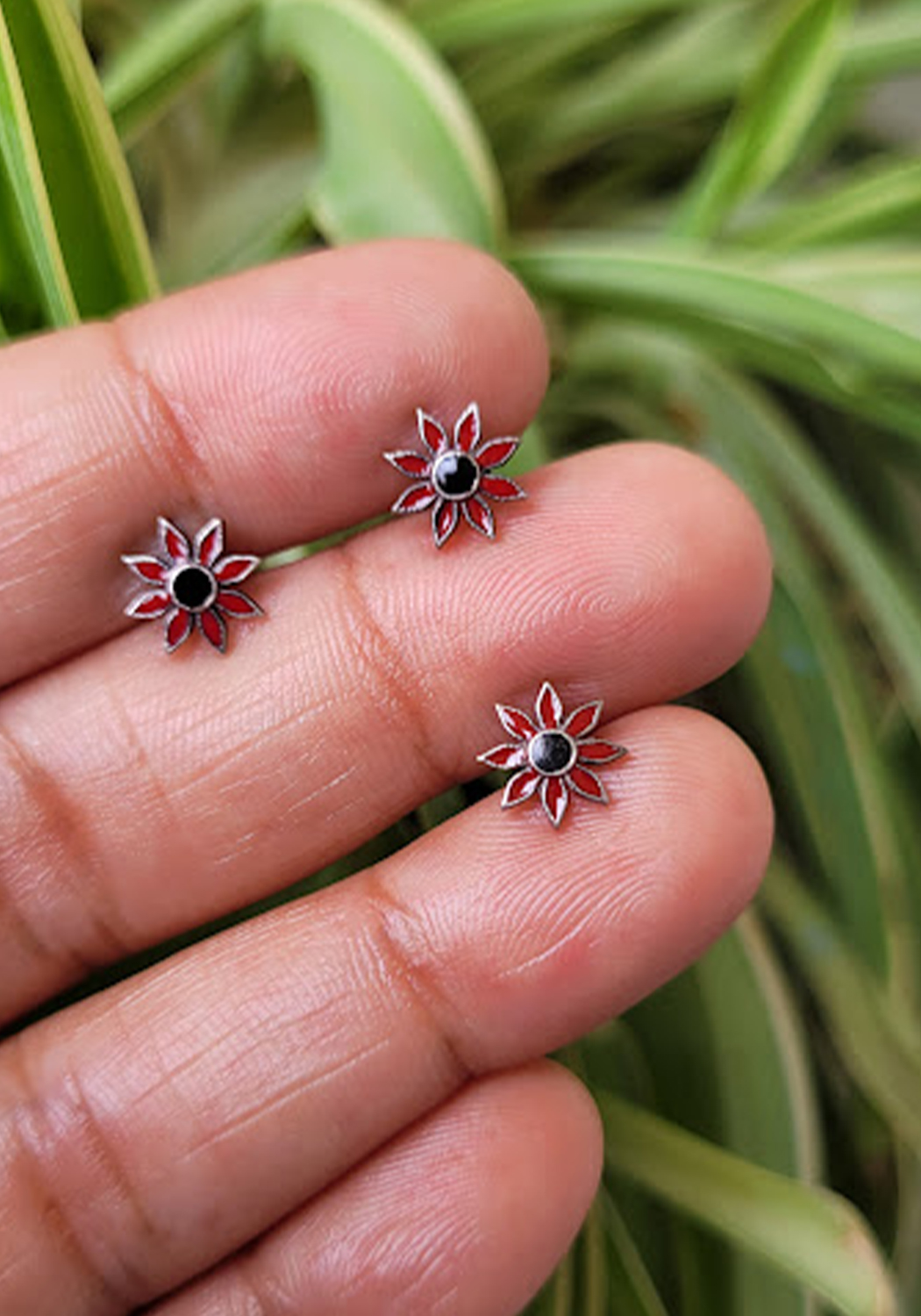 Enamel painted silver screwback nosepin.