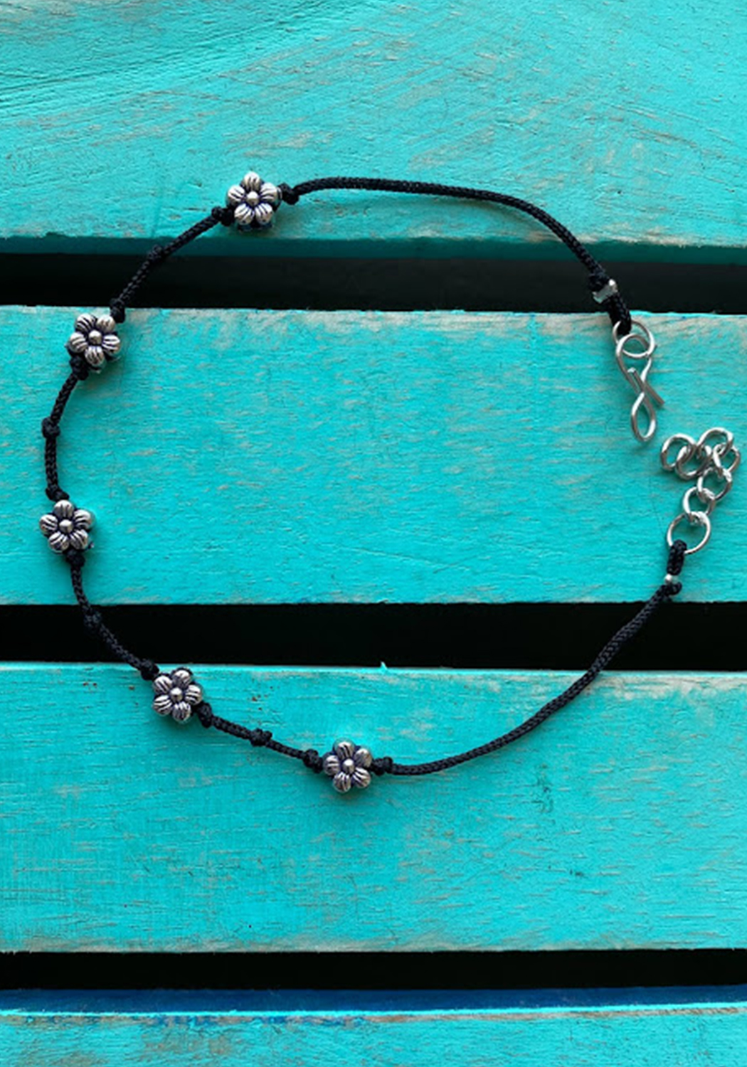 Adjustable thread anklet. Single piece.